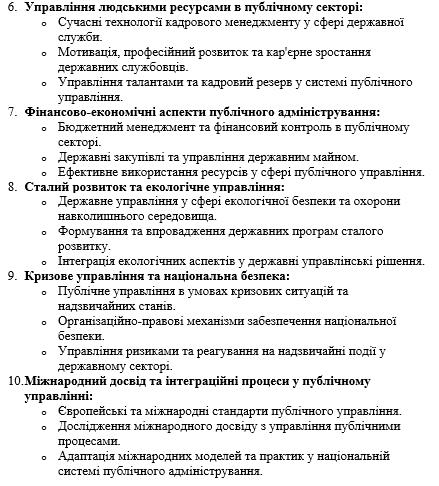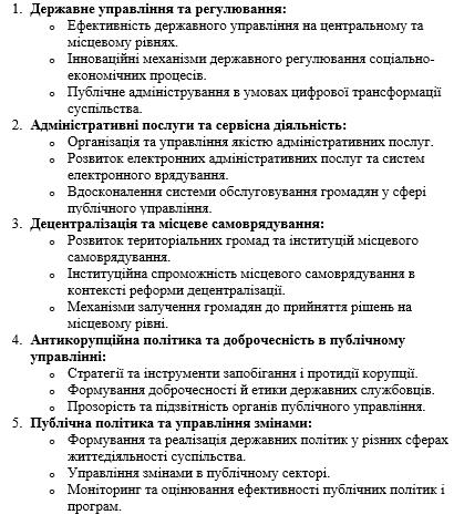 Напрямки наукової діяльності за спеціальністю D4 «Публічне управління та адміністрування» галузі знань D «Бізнес, адміністрування та право»